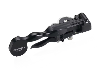 This durable labeler embosses stainless steel and aluminum labels that resist corrosion from extreme weather, temperature, chemical, or UV exposure. It includes built-in hole-punch for creating hanging labels, cable-tie slot punch, and measuring gauge to set leading and trailing label edge length. The easy-to-use cutting handle cuts square or rounded edges, while the rugged cast aluminum frame withstands tough working conditions. Kit includes embosser, character wheel, reverse-image character wheel, 1/2-inch non-adhesive aluminum and stainless steel labels, and hard carry case.